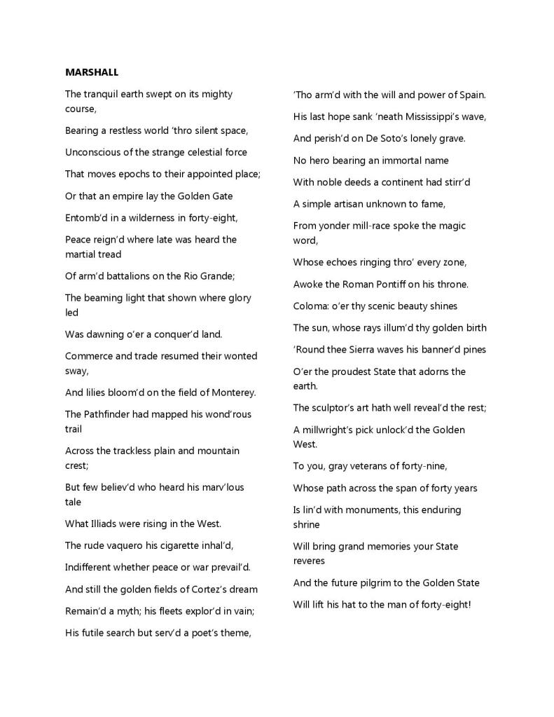 10 May 1890, page 1: MARSHALL poem from unveiling ceremony – eighth phrase, speaks of “arm’d battalions,” this would include U.S. Mormon Battalion