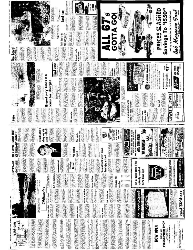 3 Aug 1967, page A-2: heard…over the back fence – SUP organizing Sierra chapter, contact Duane Ford for info