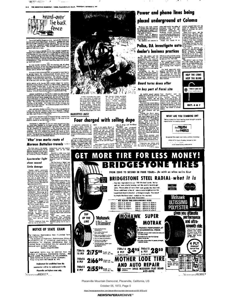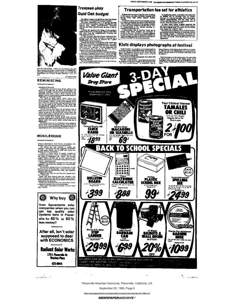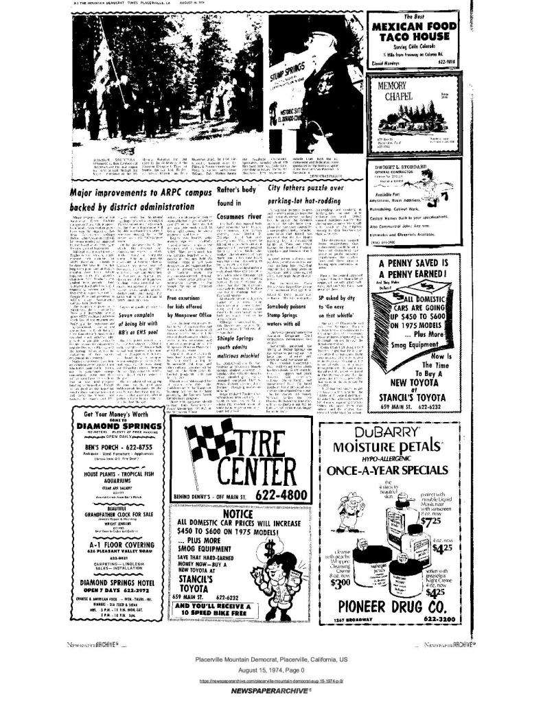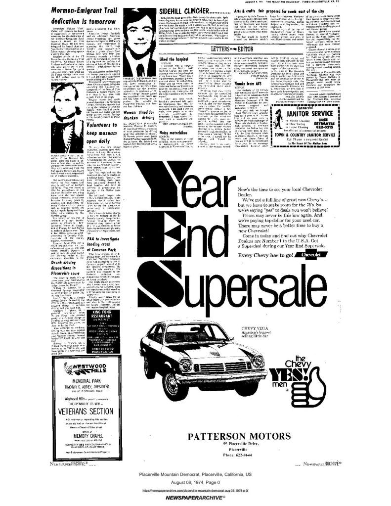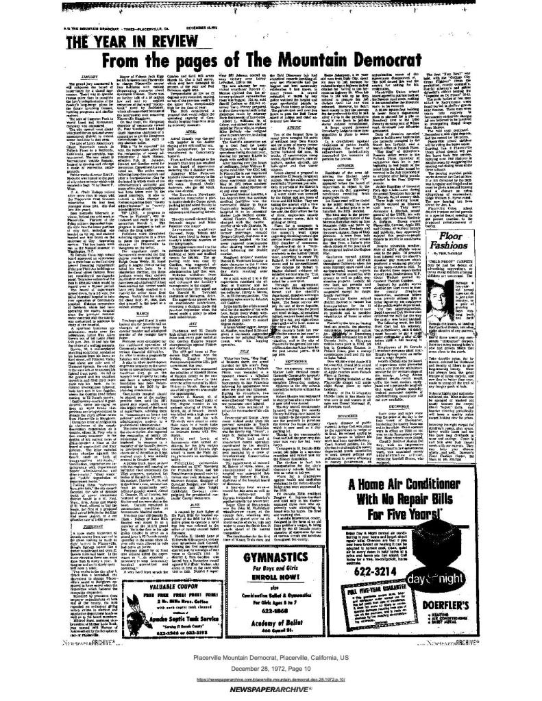 21 Sep 1972, page A-6: Work party will mark historical site Saturday – SUP, AFPC, and assemblyman Chappie’s representative