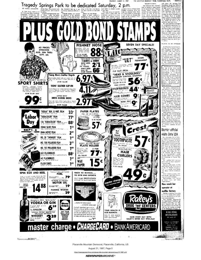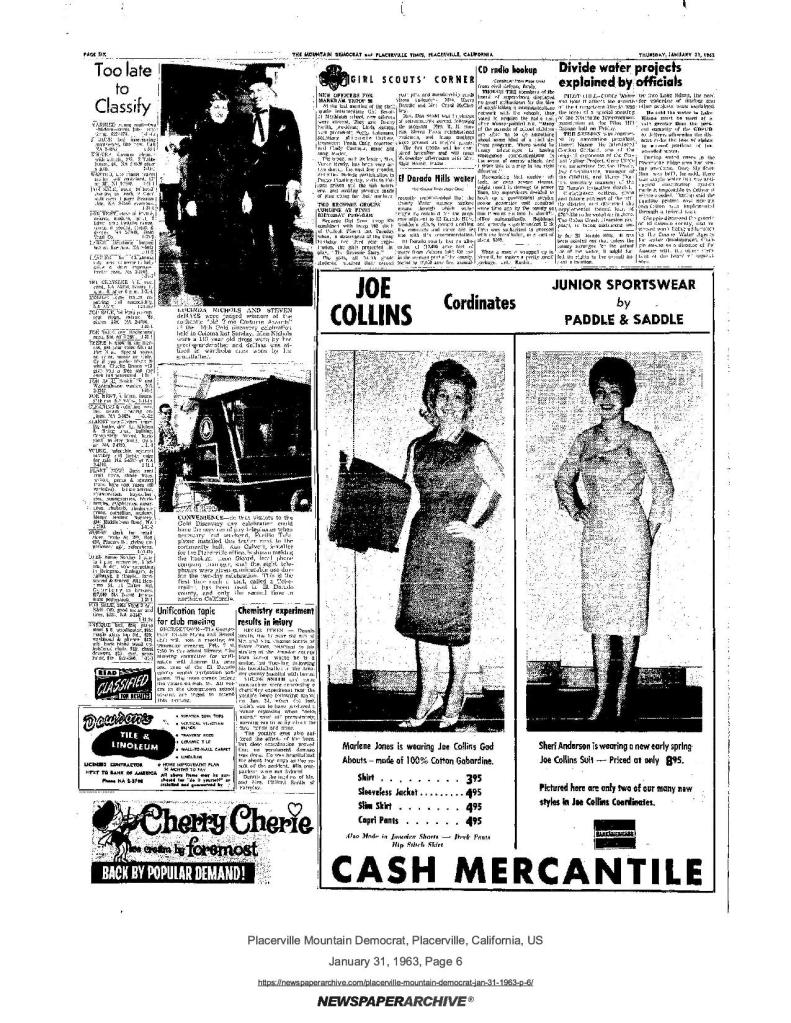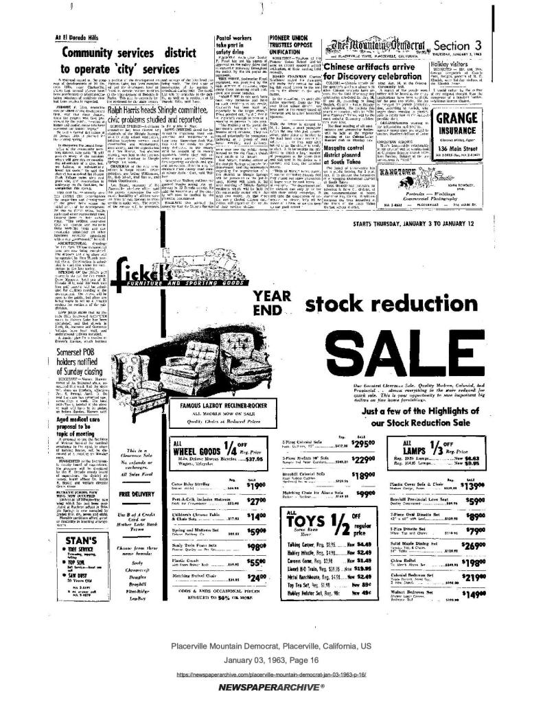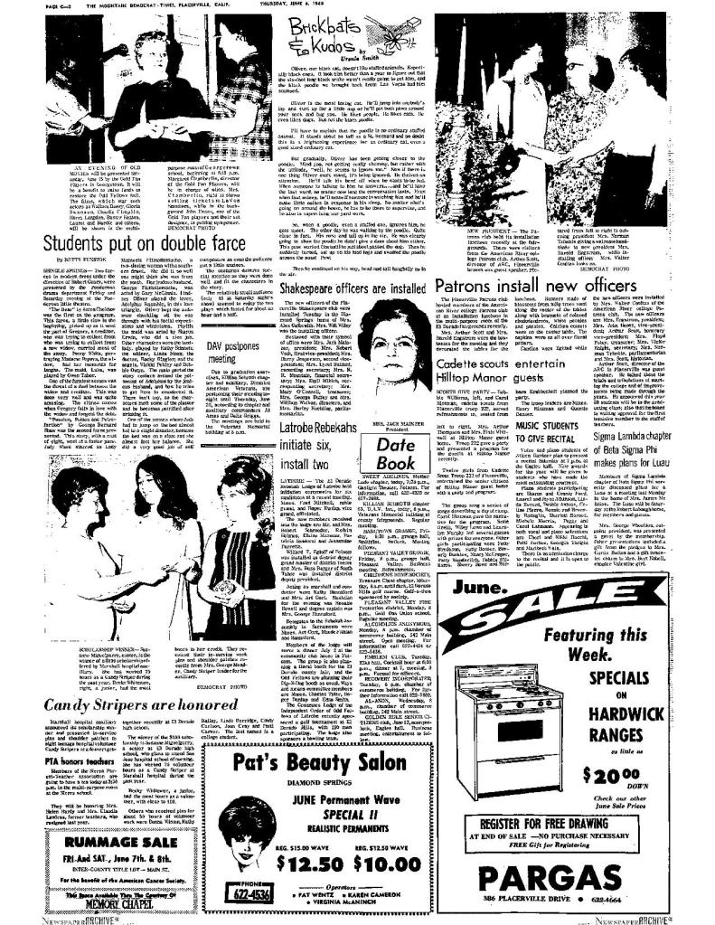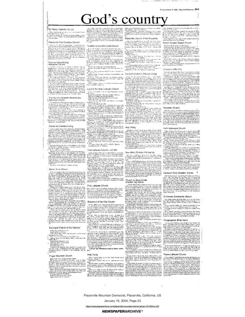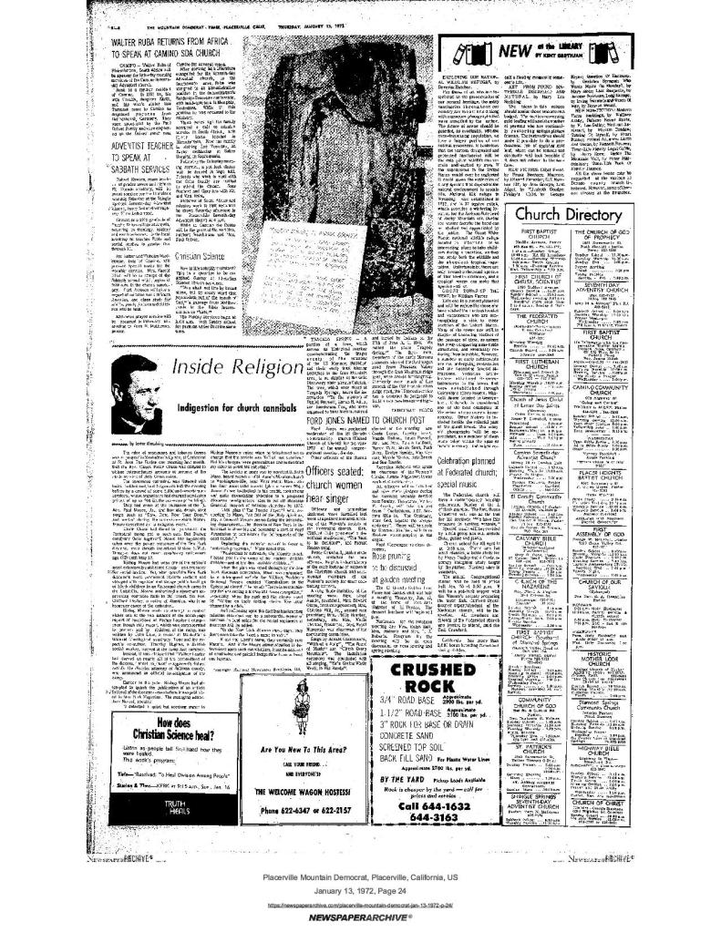 6 Mar 1969, page B-6: Church of Jesus Christ of Latter-day Saints (photo) – Placerville Ward history, begins with Mormon Battalion