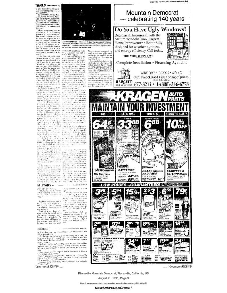 21 Aug 1991, page A-9: Trails – annual Oregon-California Trails Association (OCTA) convention with Donner Party and Mormon Battalion info