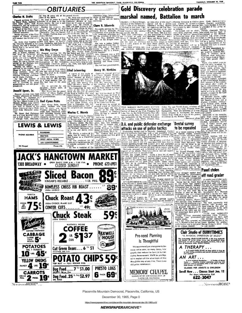 30 Dec 1965, page 2: Gold Discovery celebration parade marshal named, Battalion to march (photo) – Duane Ford, descendant’s parade member contact