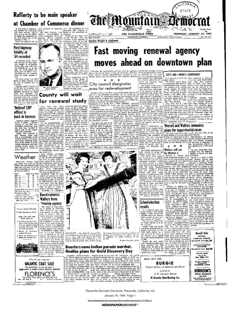 16 Jan 1964, page 1: Boosters name Indian parade marshal, finalize plans for Gold Discovery day – Indian theme