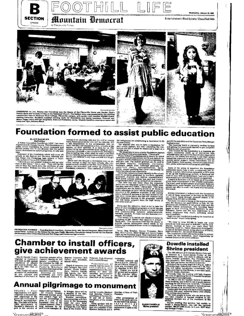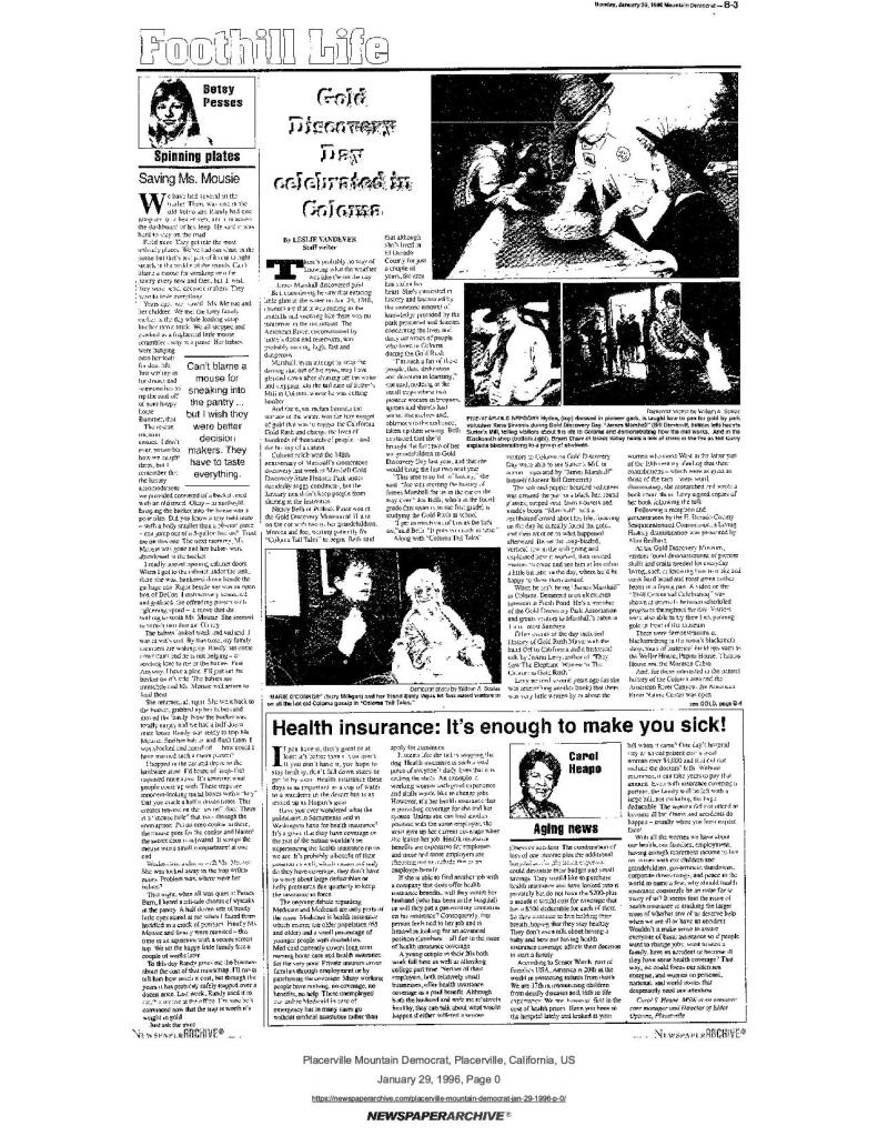 29 Jan 1996, page B-3: Gold Discovery Day – sponsored by Marshall Gold Discovery State Park and multiple historical societies, including SUP