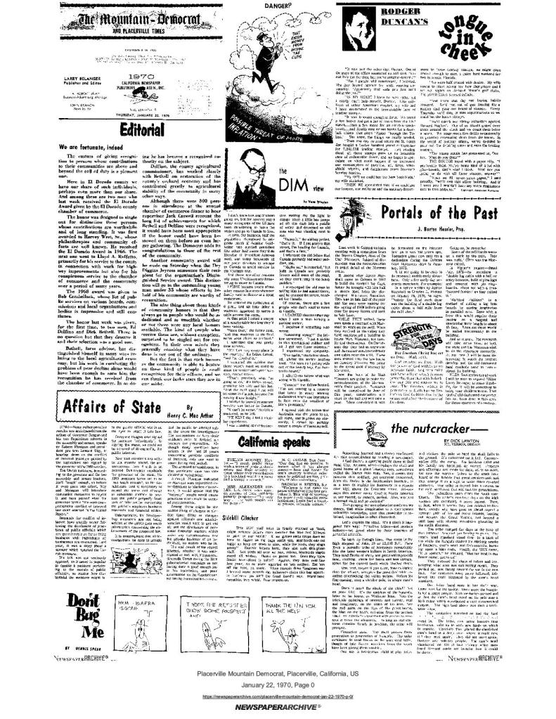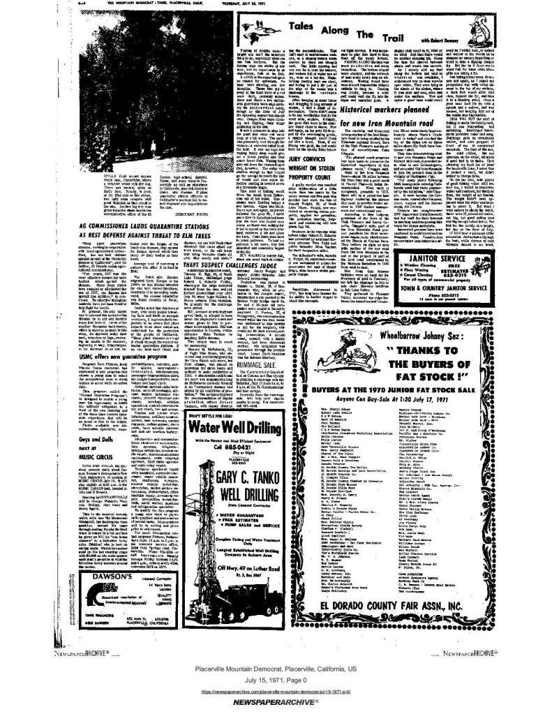 15 Jul 1971, page B-4: Historical markers planned – study by ENF, SUP, assemblyman Gene Chappie