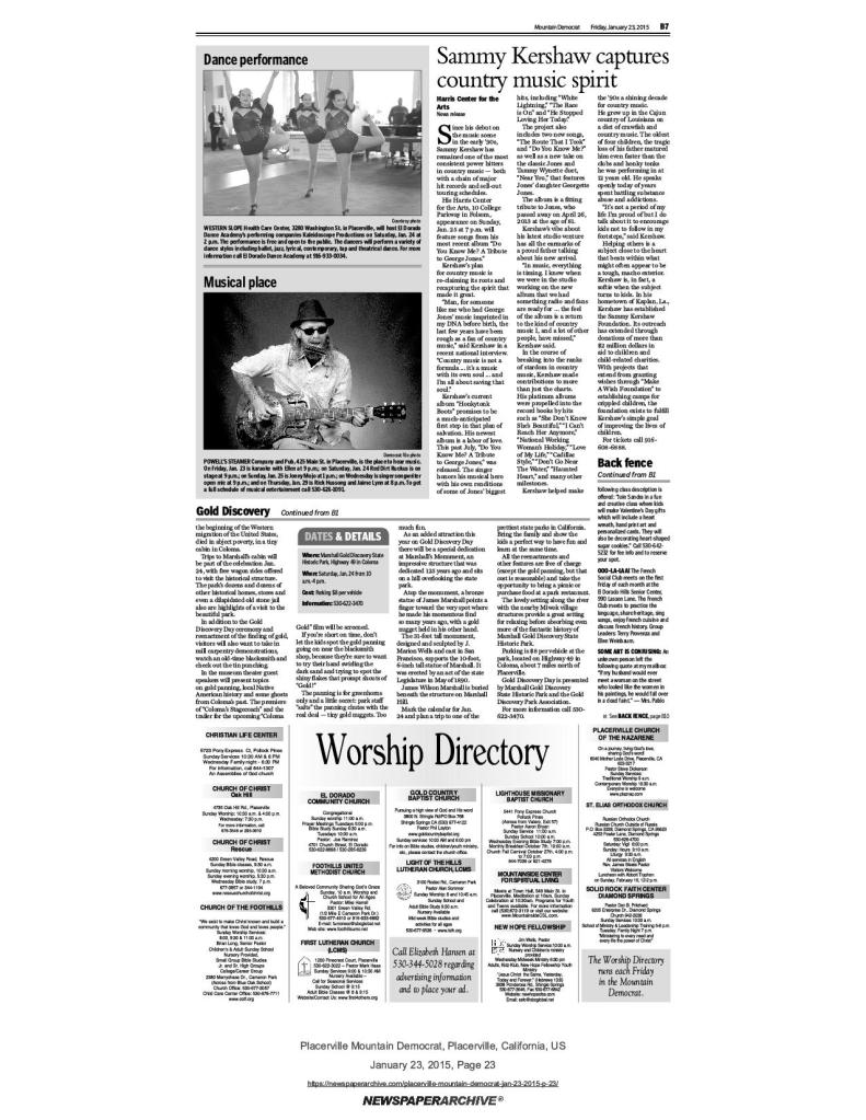23 Jan 2015, page B1: Reliving our golden history – see new replica of Sutter’s Mill