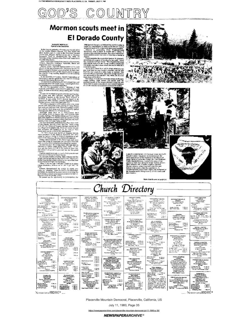 11 Jul 1980, page C-4: Mormon scouts meet in El Dorado county (photos) – commemorate 150th church founding anniversary