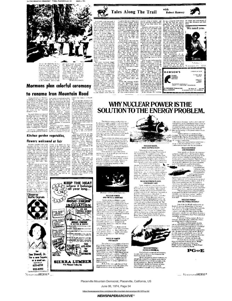 9 May 1974, page A-2: Hearings set on renaming and realignment plans – Iron Mountain road name change to Mormon Emigrant Trail