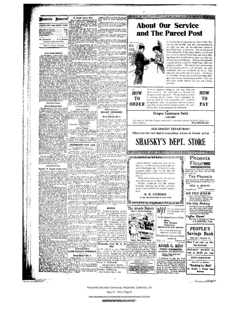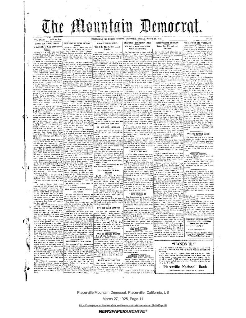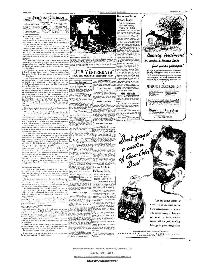 31 May 1913, page 6: El Dorado county bills – Gold Discovery Day to be commemorated by public school system; plan to purchase site of discovery of gold at Coloma
