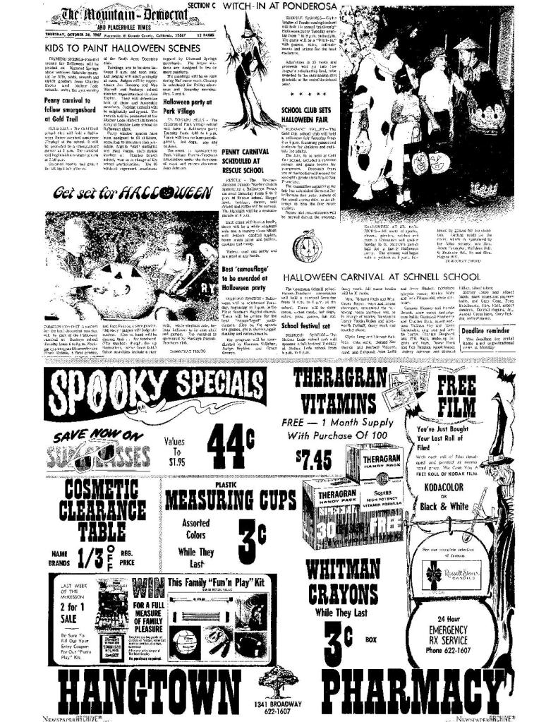 26 Oct 1967, page C-1: Halloween carnival at Schnell school – Duane Ford and Don Herman, spook house