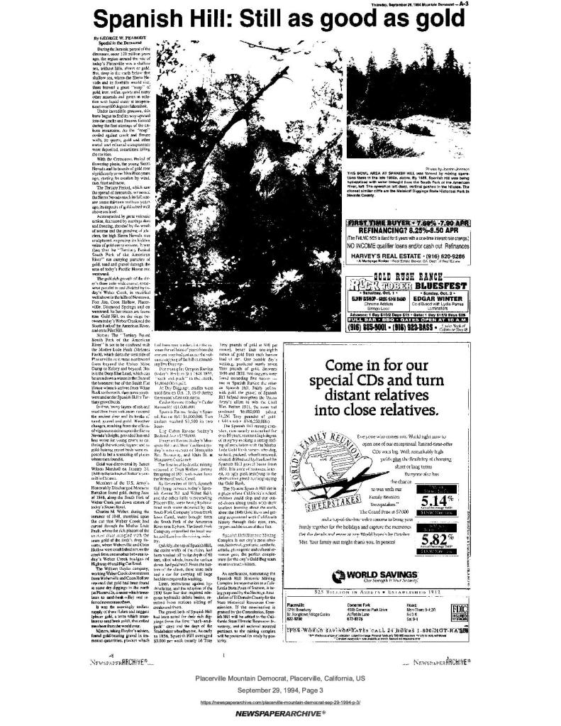 29 Sep 1994, page A-3: Spanish Hill: Still as good as gold – Spanish Hill Historic Mining Complex, Mormon Battalion period